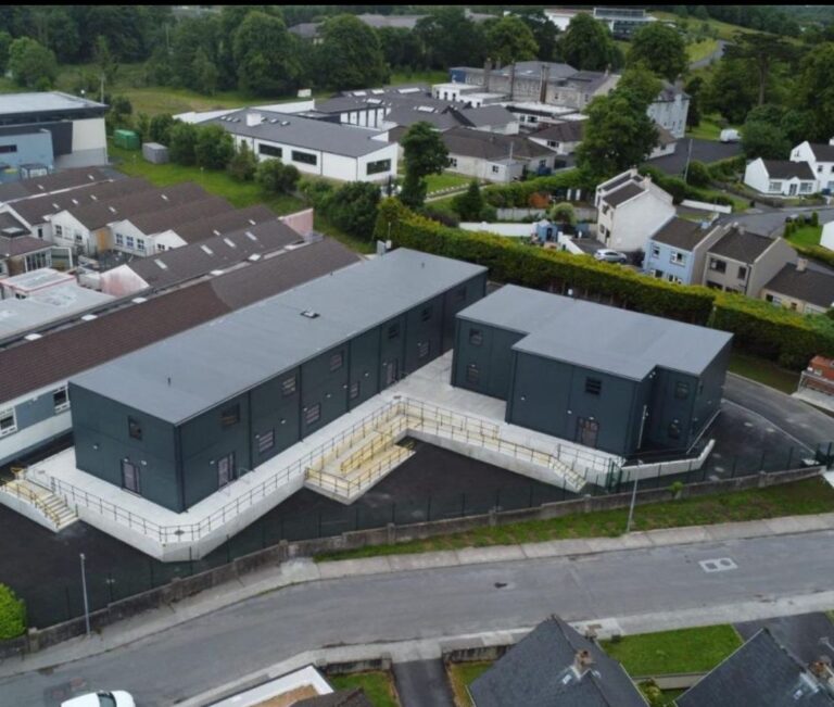 The modular school in Mayo experienced a significant upgrade with essential cladding repairs to address damage and improve insulation. Every panel was meticulously repaired onsite, resulting in a more weather-resistant building. This project not only enhanced the building’s appearance but also significantly boosted its energy efficiency. The repairs ensure the school’s exterior is well-protected against the elements, extending the structure’s lifespan and providing a superior learning environment. The result is a robust, aesthetically pleasing facility that underscores our commitment to quality and durability.